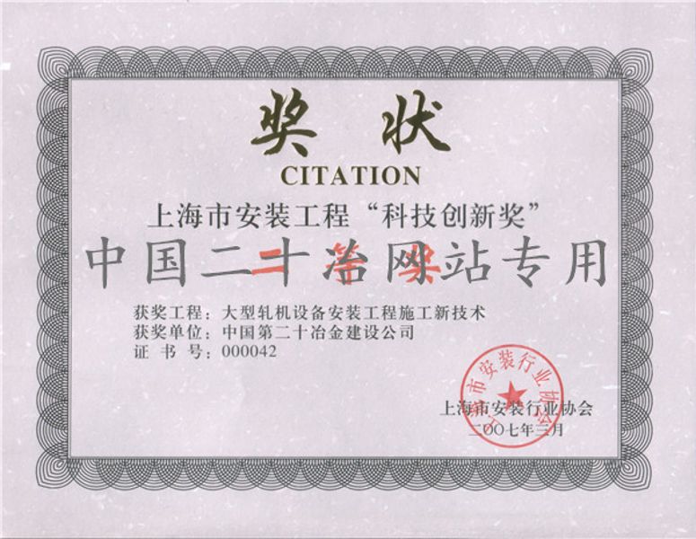 上海市安装行业科技奖