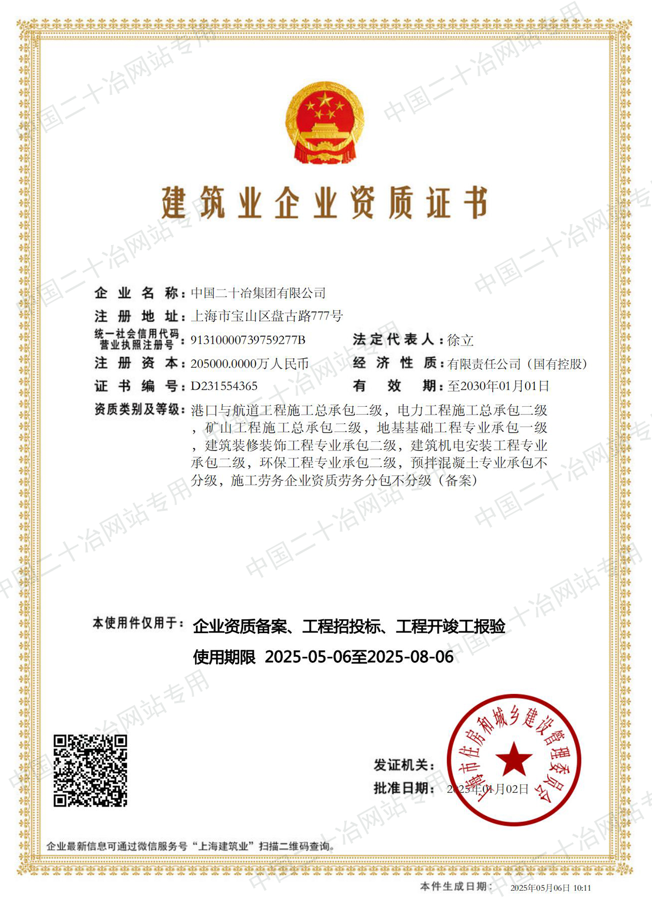 工程施工资质(上海市)