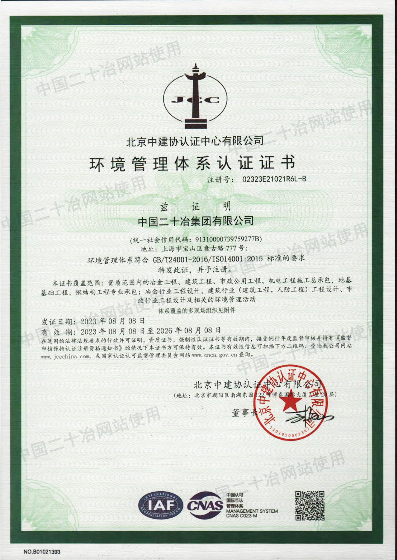 环境管理体系认证证书