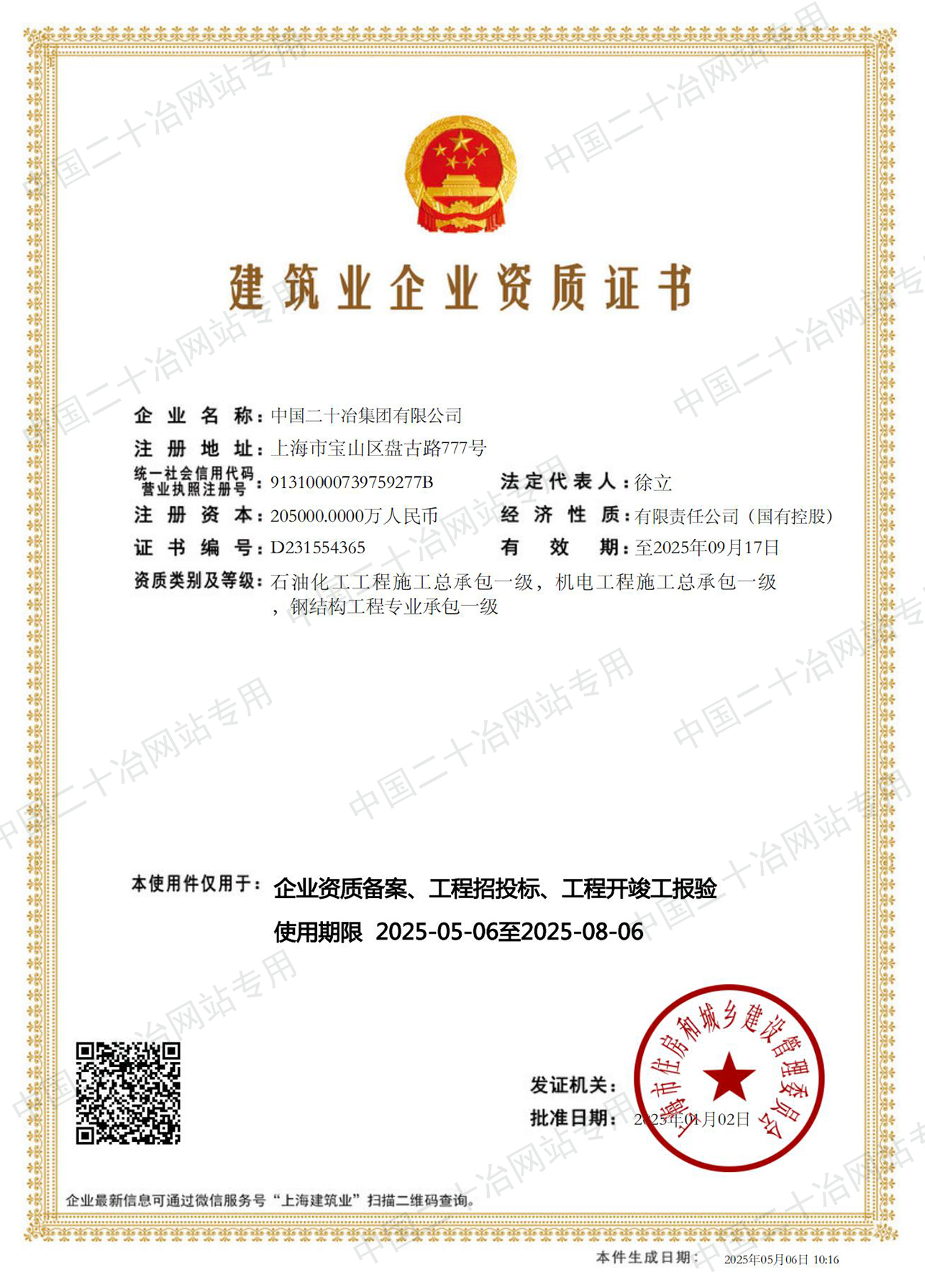 工程施工资质(上海市)