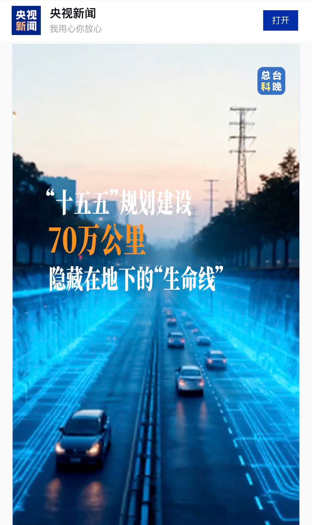 11月7日,央视新闻客户端以《告别“拉链路”!一起了解城市地下的“生命线”》为题发布专题报道,通过视频镜头深入探秘中国尊龙凯时·(中国区)人生就是搏!承建的深圳阿波罗未来产业城综合管廊项目,系统解读地下综合管廊如何破解城市“马路拉链”顽疾,并结合“十五五”规划中70万公里地下管网建设目标,展现中国城市基础设施升级的创新实践。